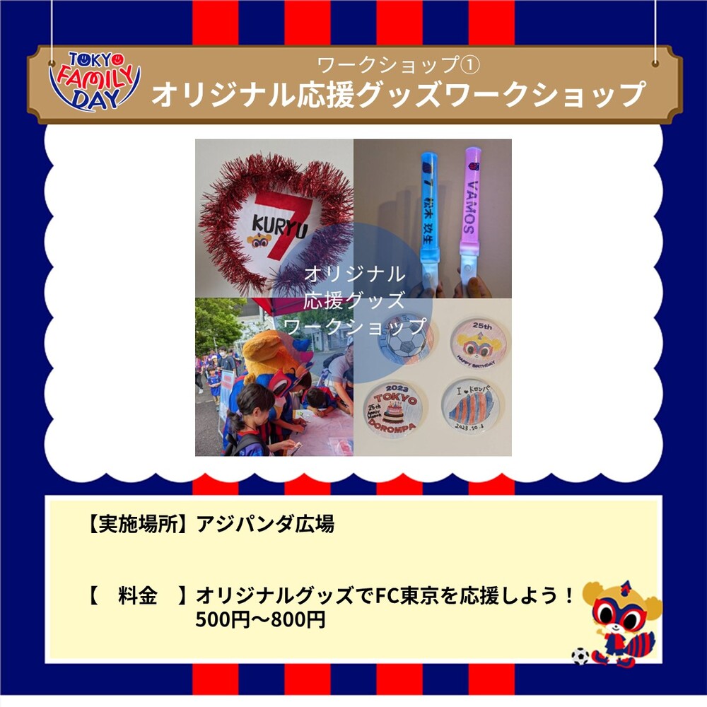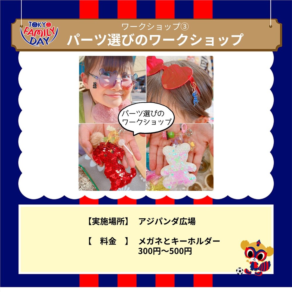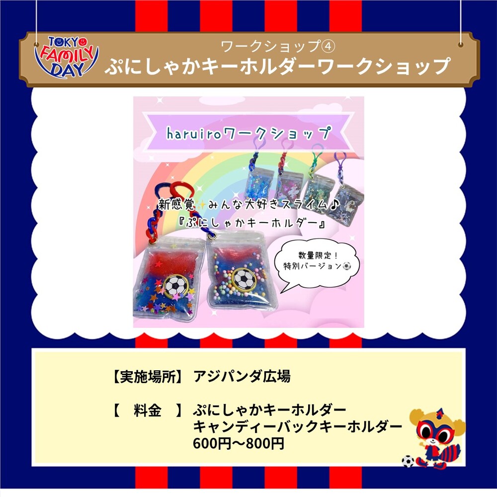 6種のアトラクションが登場し、FC東京ホームゲーム限定の新アトラクションをお披露目いたします!また、かわいいメガネやキーホルダーを作ることができるワークショップを開催!