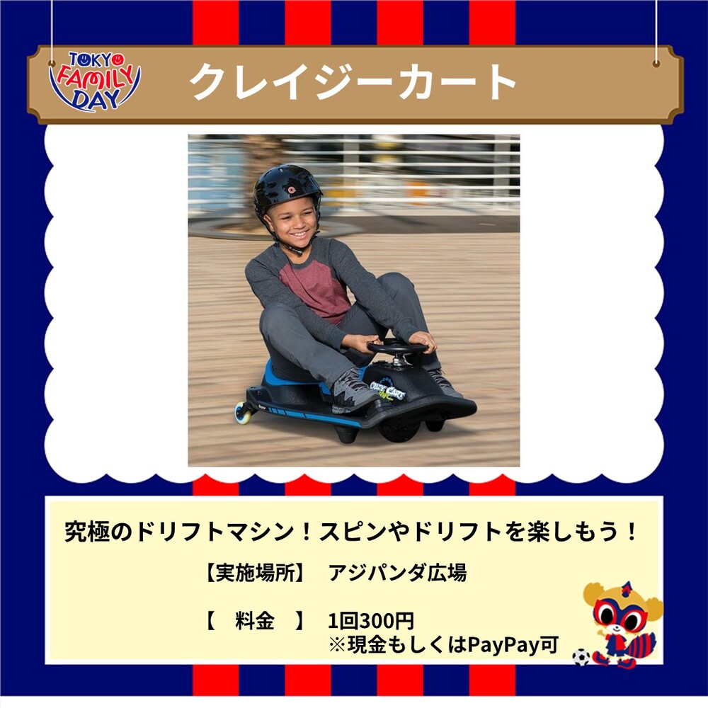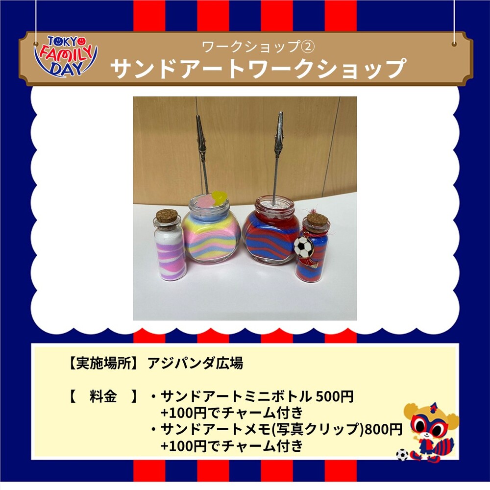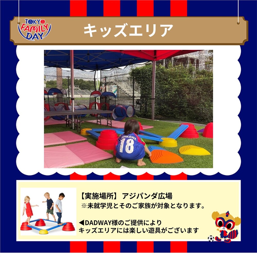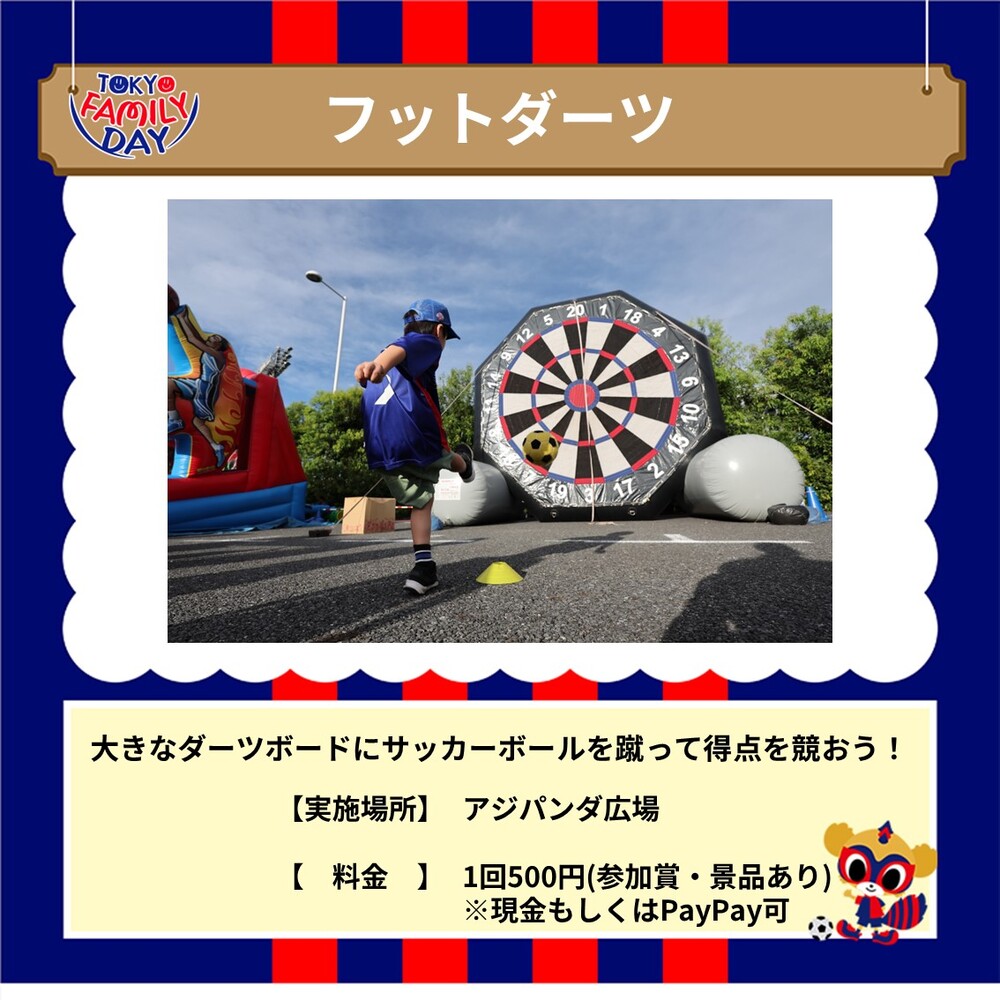 6種のアトラクションが登場し、FC東京ホームゲーム限定の新アトラクションをお披露目いたします!また、かわいいメガネやキーホルダーを作ることができるワークショップを開催!