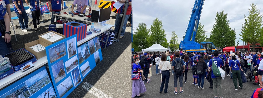 また、クレーン車近辺に大矢運送PRブースを出展し、ここにもクレーン模型を展示するなど、会社紹介のコーナーとして味の素スタジアム建設記録・写真・模型などが展示される予定です。