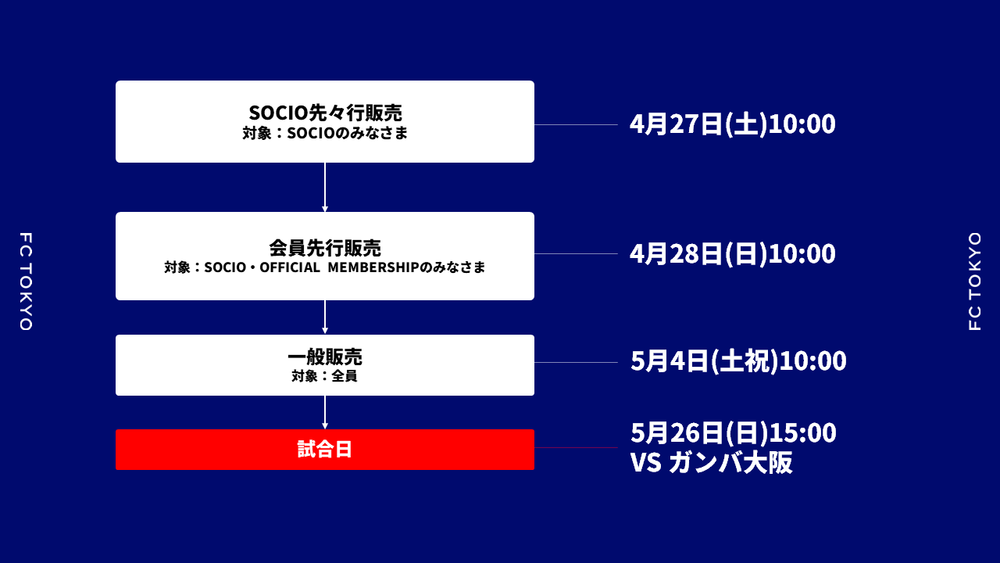 4月27日(土)よりSOCIO先々行販売を開始いたします。SOCIOのみなさまは会員価格にてご購入いただけます(1試合4枚まで)。