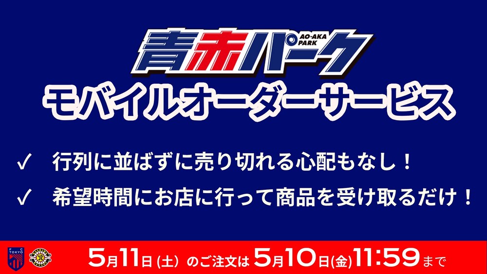 5月のホームゲームにおける青赤パーク モバイルオーダーサービスのお知らせ