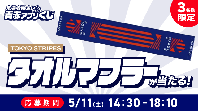 5月11日(土)FC東京vs柏レイソルにて、FC公式アプリを活用した来場者限定の「青赤アプリくじ」を実施します。