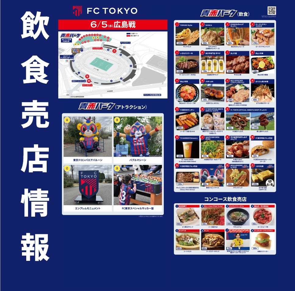 6月5日(水)サンフレッチェ広島戦の青赤パーク(場外)、出張!!青赤パーク、スタジアム内コンコース(場内)売店にて販売する飲食情報をお知らせいたします。
