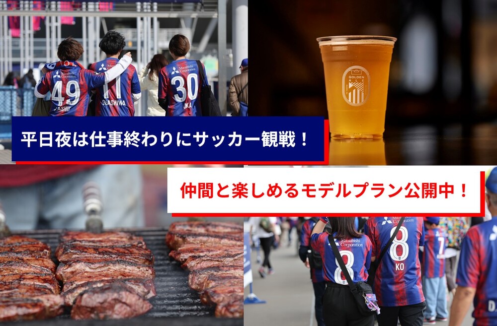 平日夜に開催されるからこそサッカー観戦を楽しんでいただけるように、お供となるビールやフードのキャンペーンを実施します。平日のサッカー観戦が初めての方でも安心してお楽しみいただけるように、キャンペーンを満喫できるモデルプランをご紹介します!