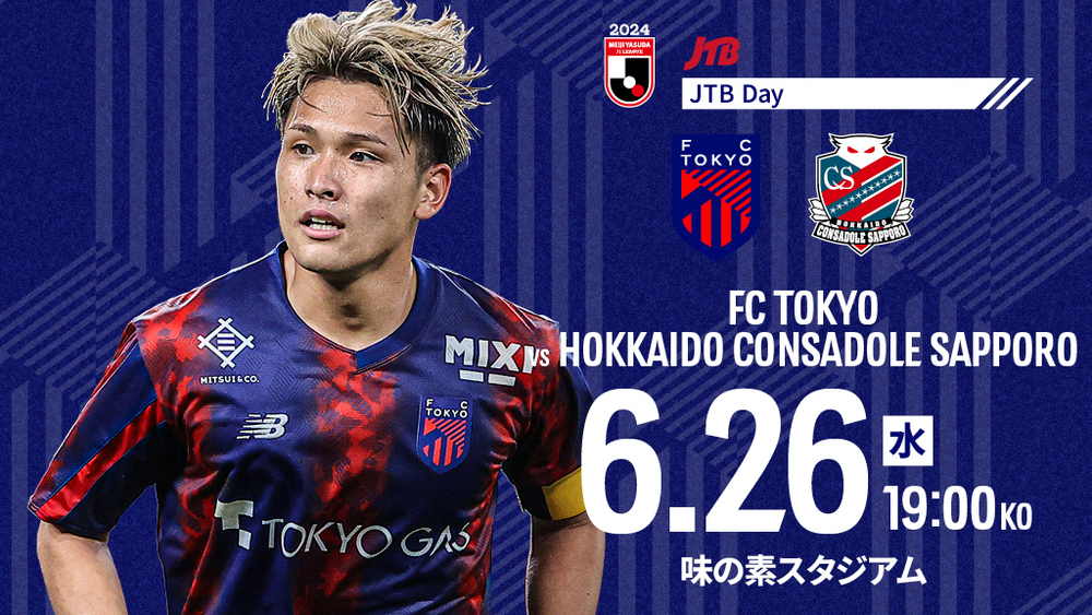 6月26日(水)、平日夜に味の素スタジアムで北海道コンサドーレ札幌と対戦します。