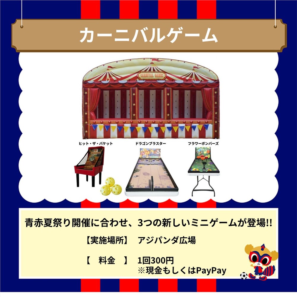 この日は「青赤夏祭り」を開催!縁日ブースや初登場のカーニバルゲームをお楽しみください!