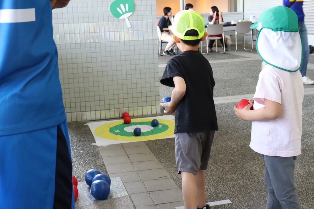 ※ボッチャとは青赤のボールを下から投げ、正確に目標に近づけられるか競うゲームです。