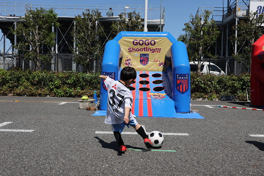 FC東京限定のアトラクション。ビンゴを狙ってボールを蹴って景品をゲット!参加賞のご用意もあります。