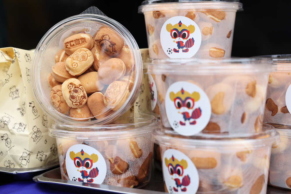 クラブオリジナルスイーツのベビーカステラ。チームマスコット東京ドロンパの焼き印入りです。