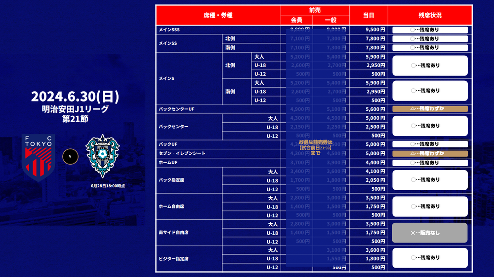 チケットFC東京(Jリーグチケット)でのみ販売いたします。