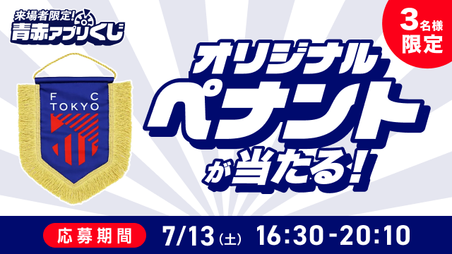 7月13日(土)FC東京vsアルビレックス新潟にて、FC公式アプリを活用した来場者限定の「青赤アプリくじ」を実施します。