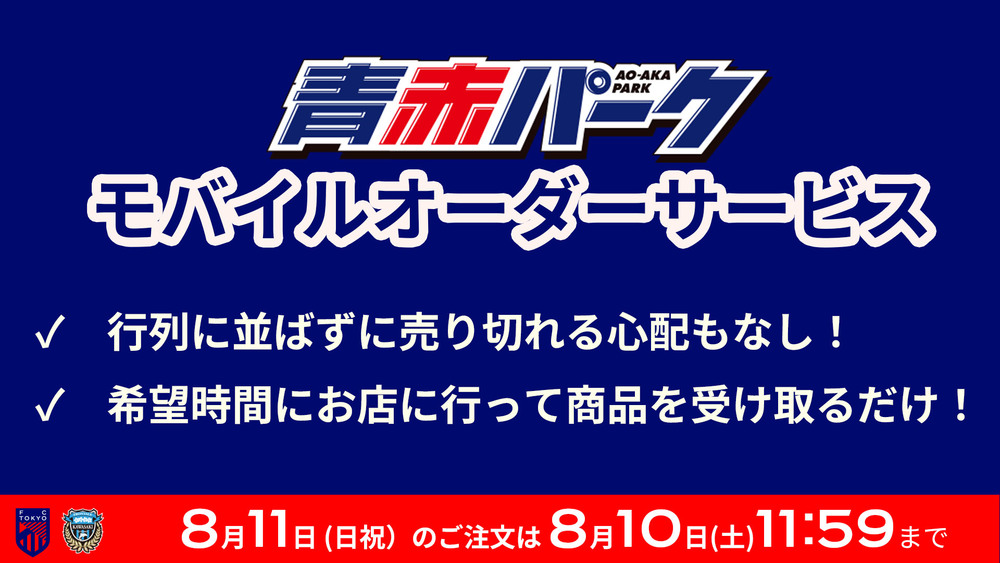 8月ホームゲームにおける青赤パーク モバイルオーダーサービスのお知らせ
