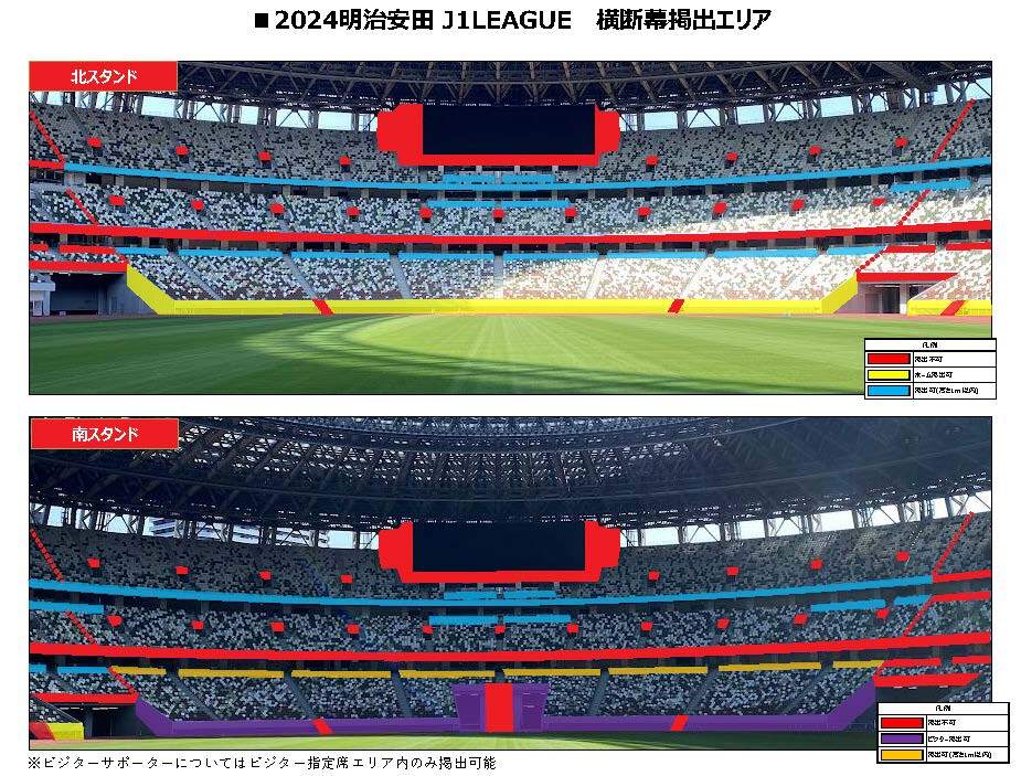 ※上記エリア以外でのビジターグッズの着用、ビジターチームの応援は一切できません。
