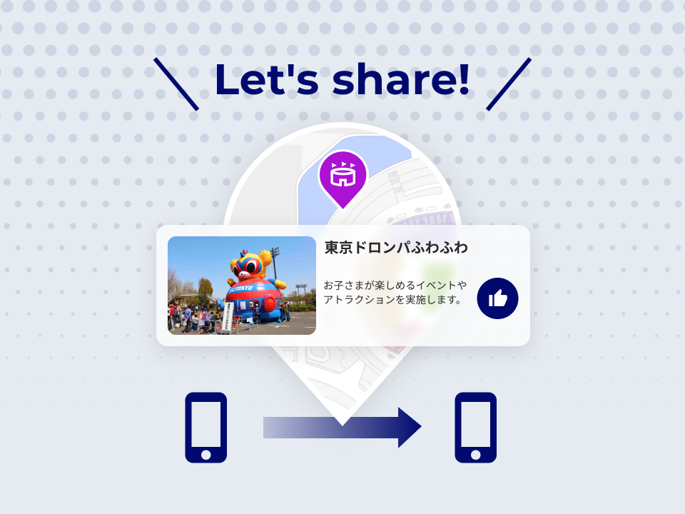 家族や友人にグルメやイベント情報をカンタンにシェアできます。自分がいる場所も相手にシェアできるので、待ち合わせなどにもお使いいただけます。