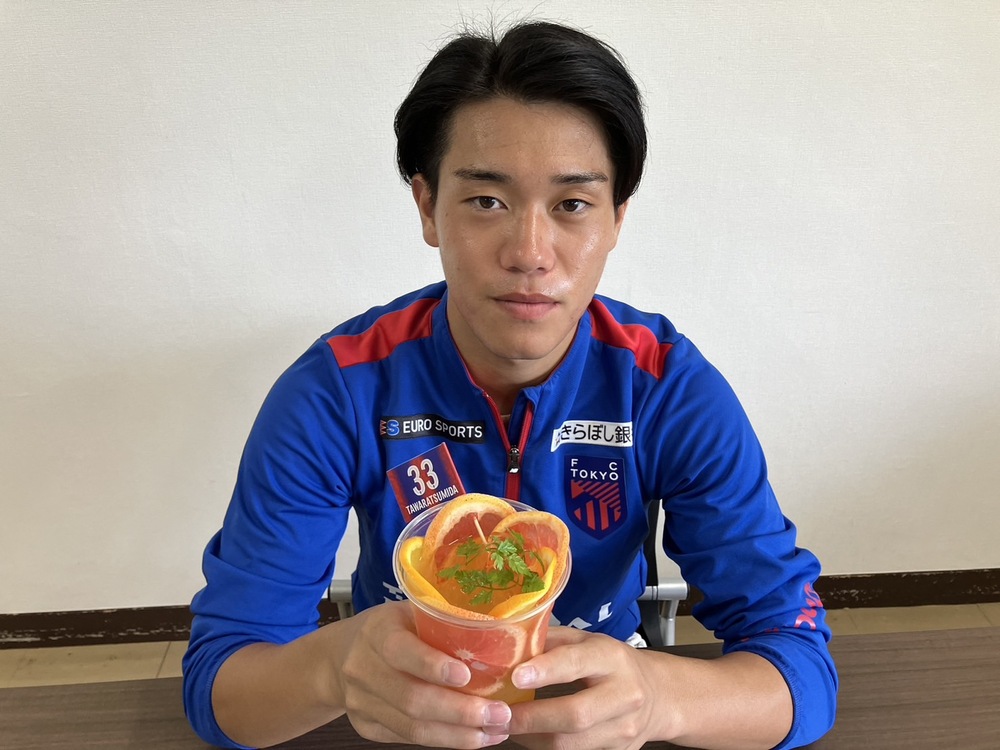 俵積田選手の大好きなオレンジジュースを、より多くの方に楽しんでいけるように工夫しました!俵積田選手の得意なプレーであるドリブルを表現したキレのあるスカッシュです。