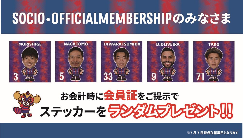 グッズ売店でのお会計時に会員証(カードorデジタル)をご提示でプレーヤーステッカーをランダムプレゼント!