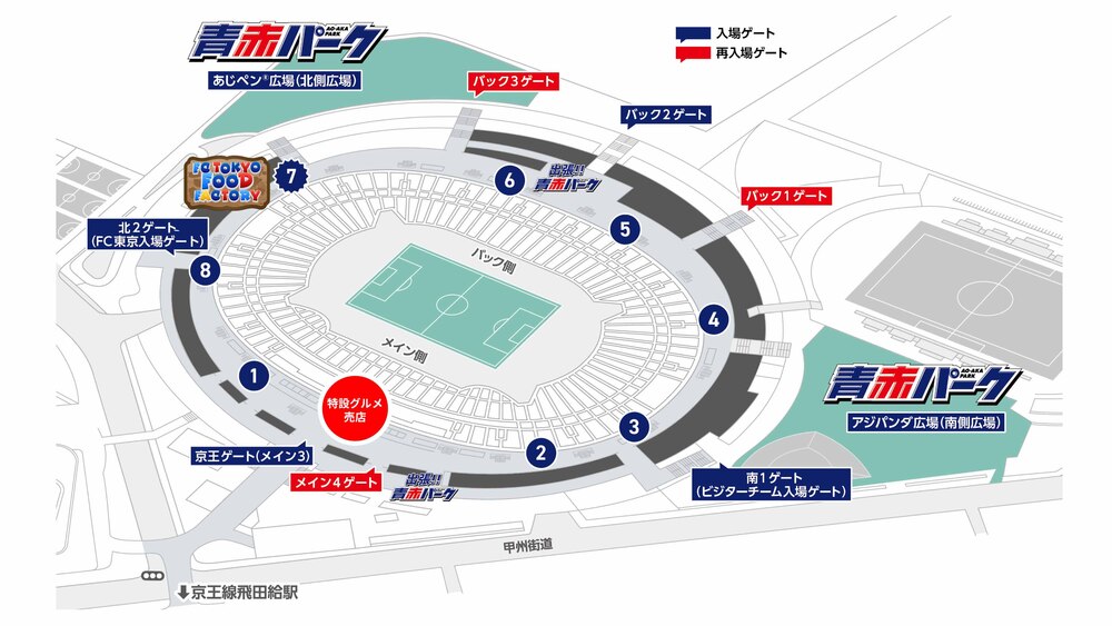 ※青赤パークは入場前(開門前)からご利用できます。入場後も再入場ゲートからご利用可能です。