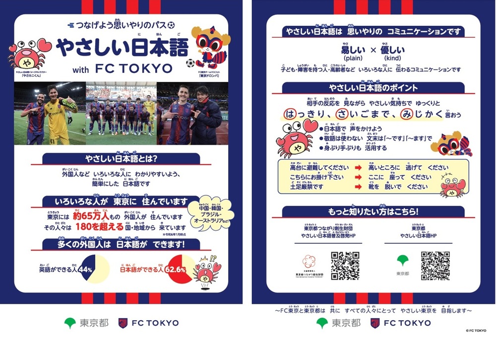 11月3日(日祝) 2024明治安田J1リーグ 第35節 vs湘南ベルマーレ (14:00キックオフ/味の素スタジアム)において、東京都と連携し「やさしい日本語」のPRを実施いたします。