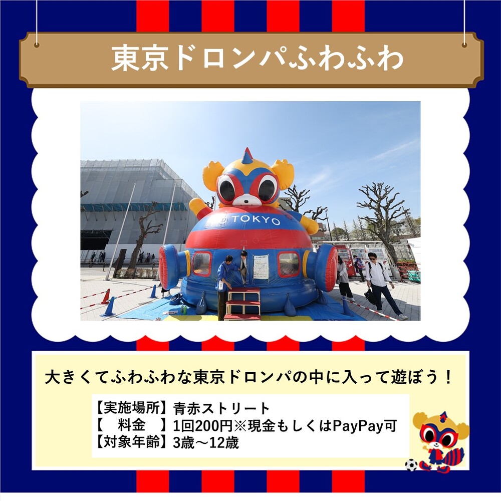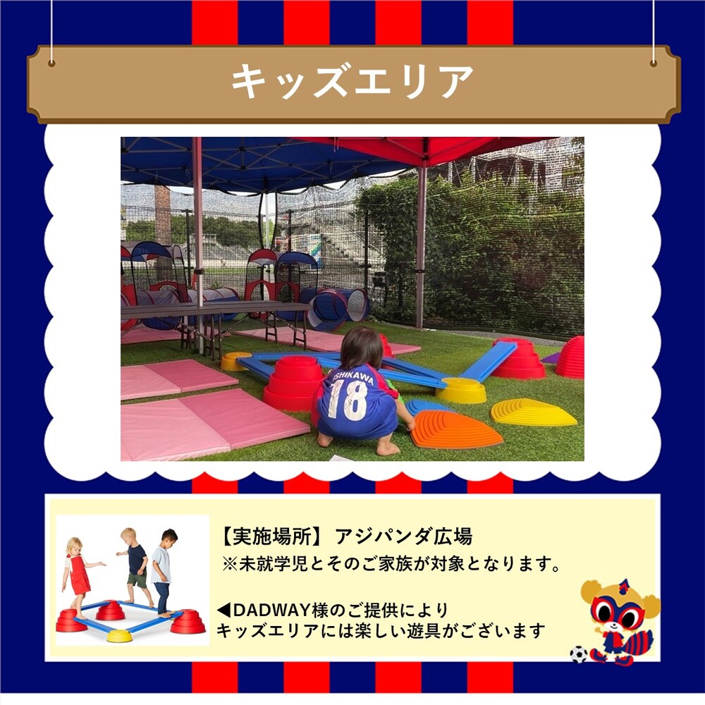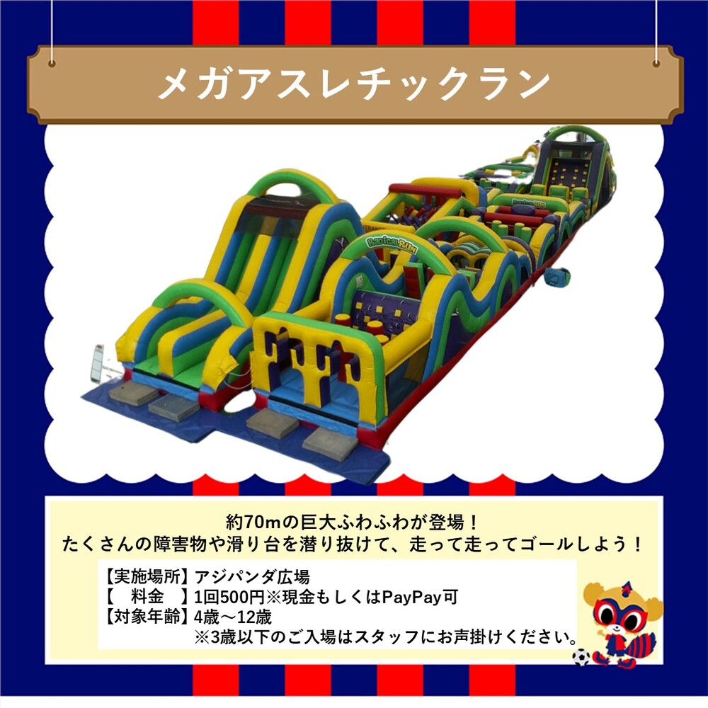 この日は約70mの巨大ふわふわ「メガアスレチックラン」が初登場!試合前に青赤パークで楽しい思い出を作ろう!