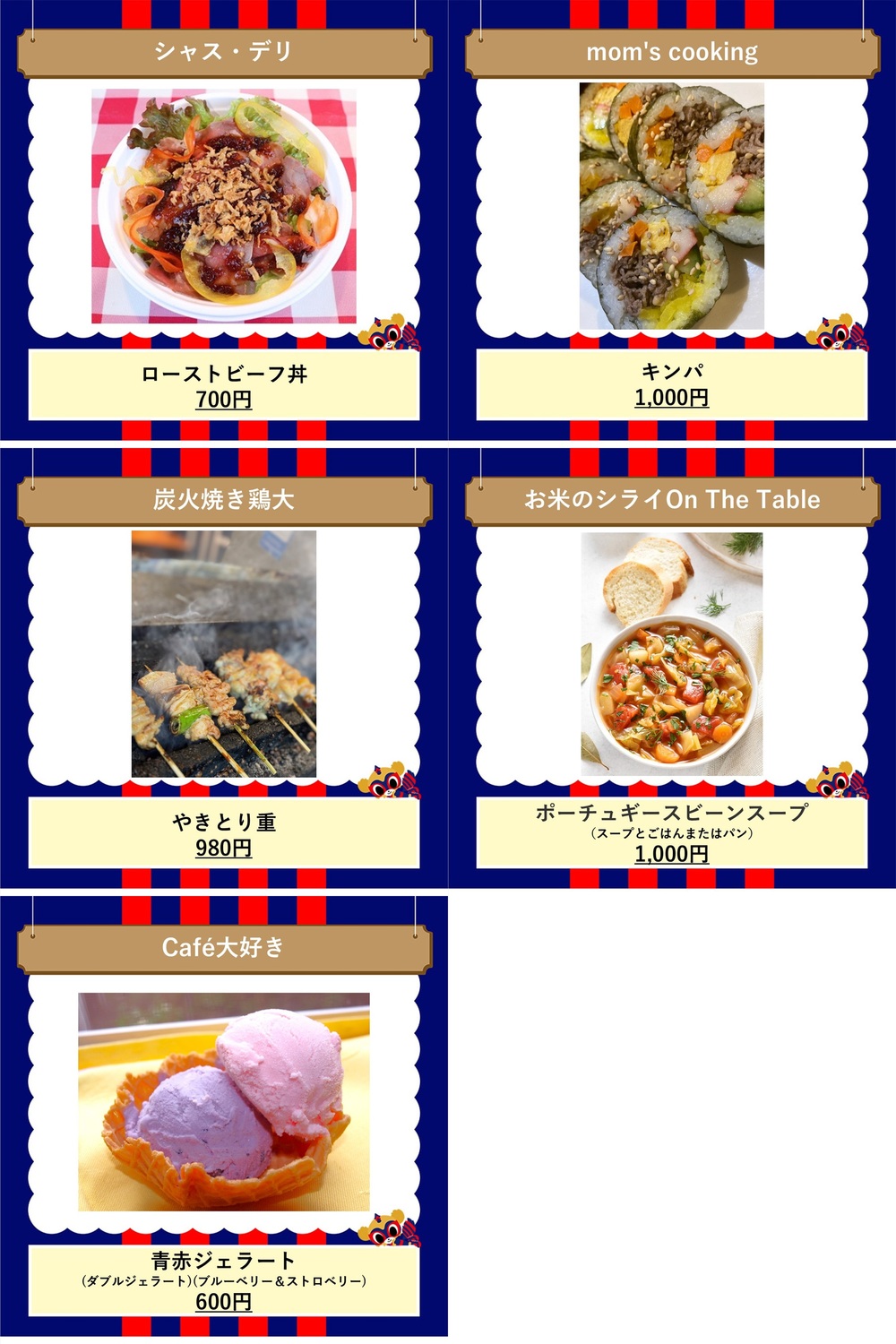 キッチンカーの出店や、ステージイベント、調布市関連ブース、東京ドロンパふわふわの設置を行うほか、調布市の飲食店舗のみなさんにご出店いただく飲食ブースの設置を行います。