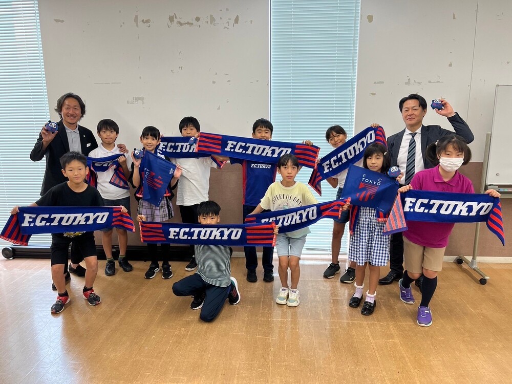 調布市では、FC東京との連携により、市内の小学生10人を「ピースメッセンジャージュニア」に任命し、平和学習を行っています。