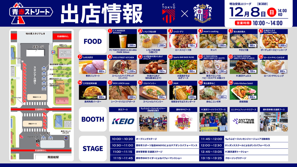 12月8日(日) 2024 明治安田J1リーグ 第38節 vs セレッソ大阪 (14:00キックオフ/味の素スタジアム)にて実施する、第4回青赤ストリートの各種イベント情報についてお知らせいたします。