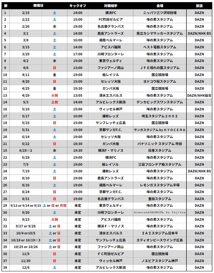 2025明治安田J1リーグの日程が決定いたしましたので、下記のとおりお知らせいたします。