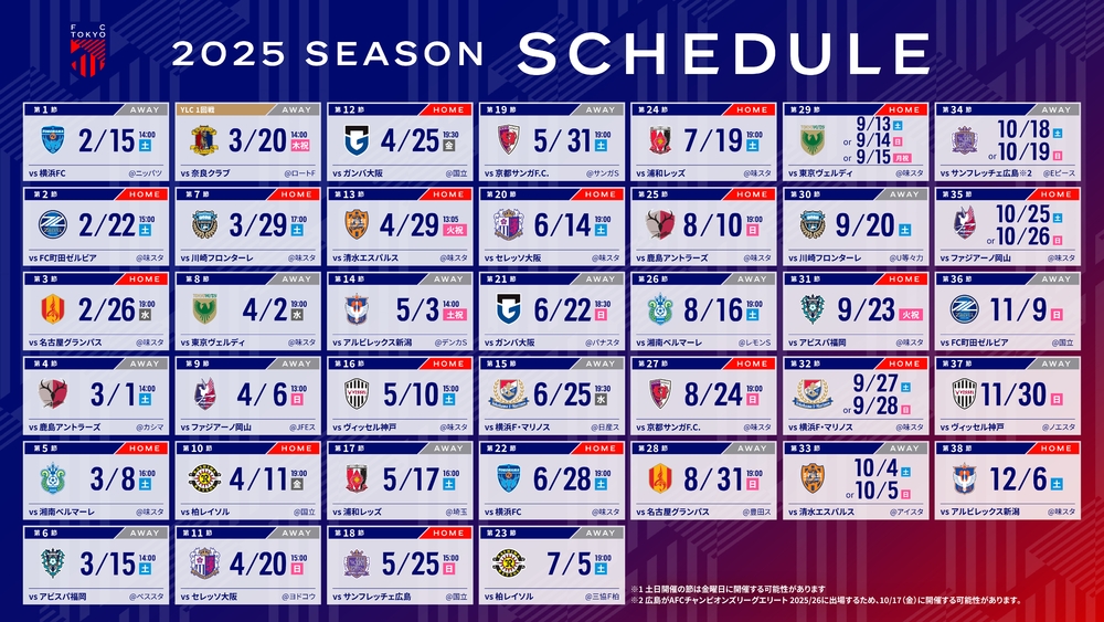 ※3 広島がAFCチャンピオンズリーグエリート 2025/26に出場するため、10月17日(金)に開催する可能性があります