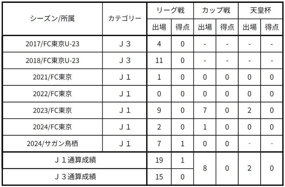 ※2021年順天堂大学所属時に天皇杯3試合出場1得点を記録