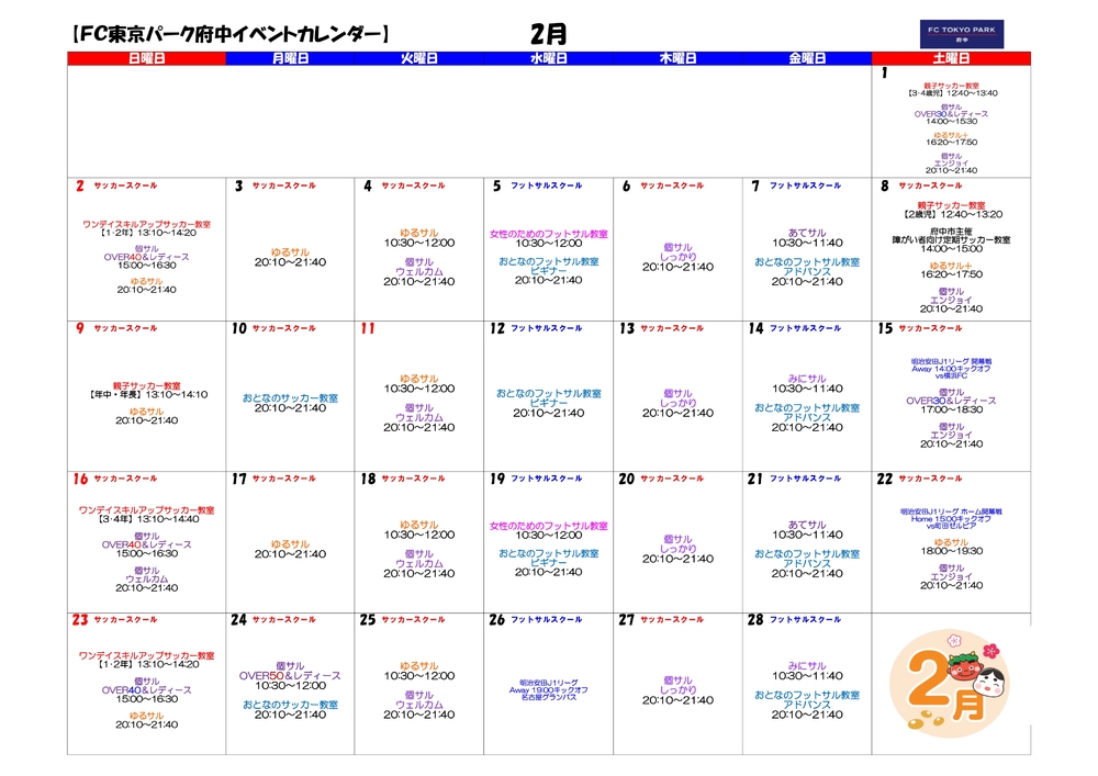 □FC東京パーク府中2月開催イベント情報