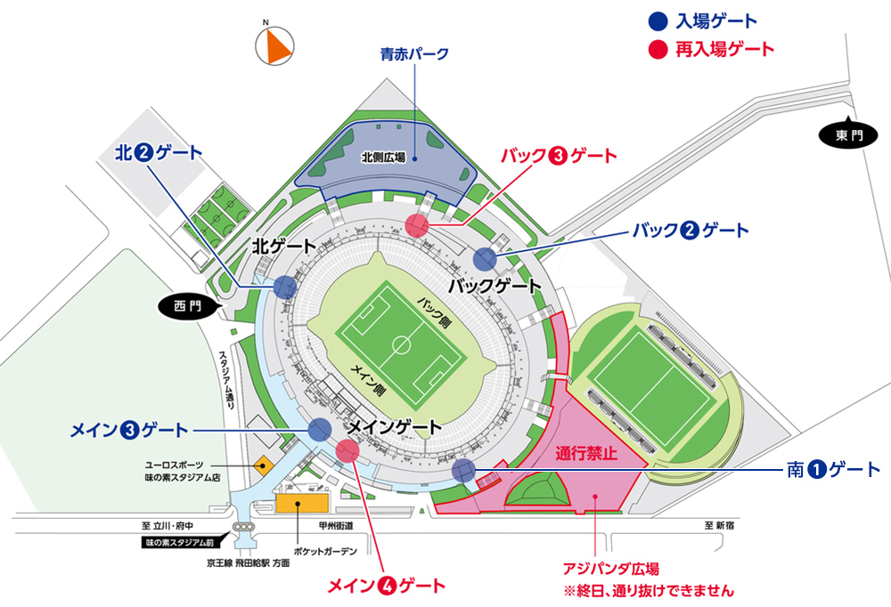 ※整理券をお持ちではない方は、キックオフ4時間前より最後尾にお並びいただけます。一度お並びいただいた後は列を離れることが可能です。対象となる開門時間の20分前に待機列エリアにお戻りください。なお、本試合ではアジパンダ広場の通り抜けおよび入場は不可となっております。