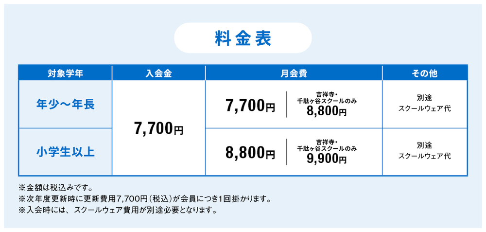 ・ご入会後、次年度以降の継続についてはコース・会場の変更がない場合は自動更新となります。