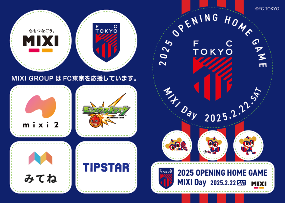 2月22日(土) 2025明治安田J1リーグ第2節 vsFC町田ゼルビア(15:00キックオフ/味の素スタジアム)において、クラブパートナーである「株式会社MIXI」のご協賛をいただき、『MIXI Day』を開催いたします。
