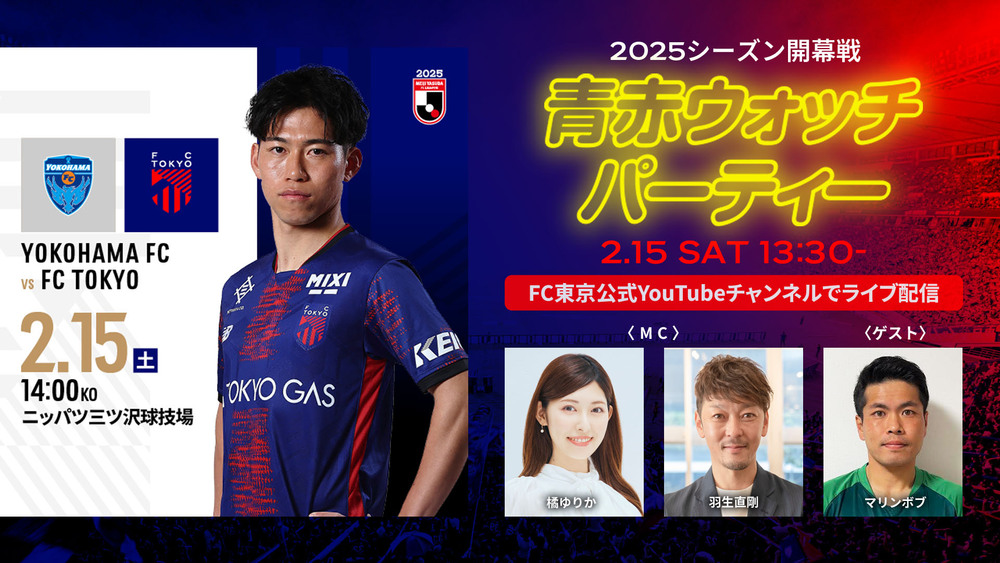 2月15日(土)に開催される横浜FCとのアウェイでの明治安田J1リーグ開幕戦を対象に 『2025シーズン開幕戦 青赤ウォッチパーティー』をライブ配信いたします。
