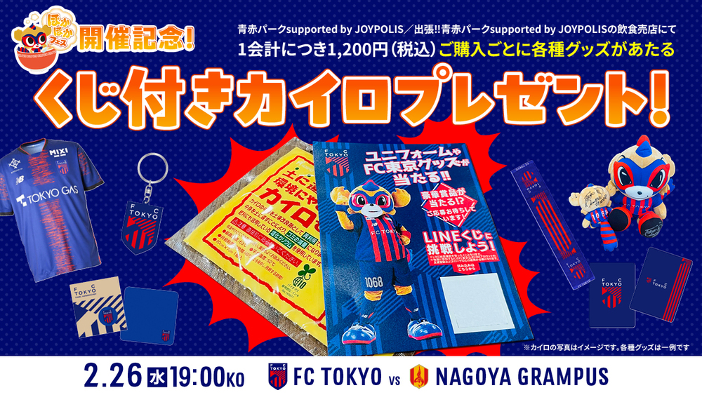2月26日(水) 2025 明治安田J1リーグ 第3節 vs 名古屋グランパス(19:00キックオフ/味の素スタジアム)にて、ほかほかフェスを開催することが決定いたしました。
