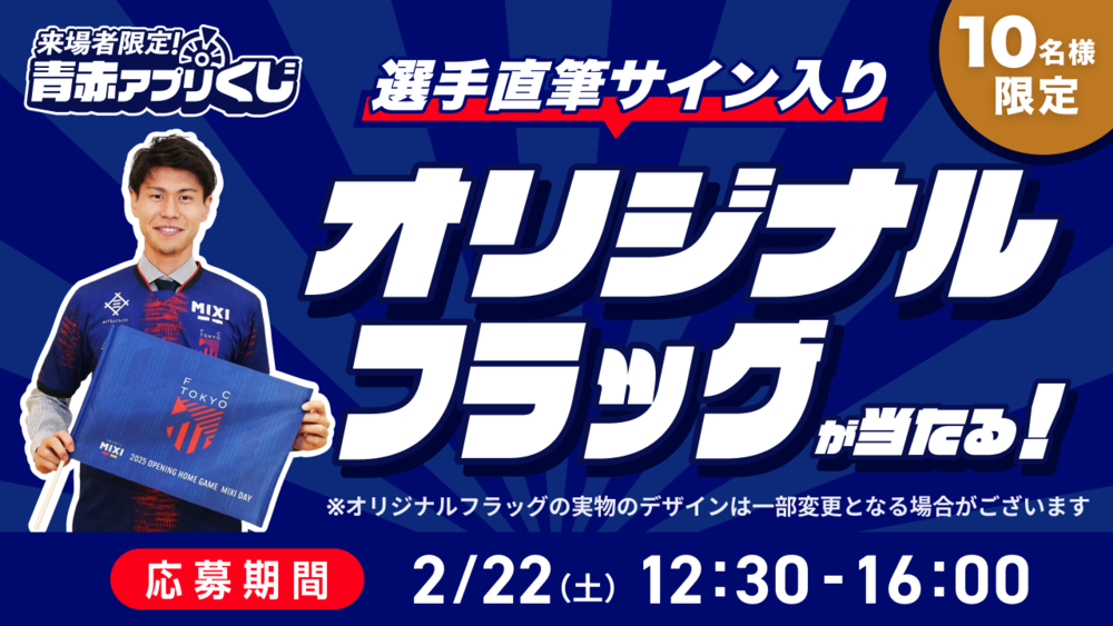 「選手直筆サイン入りオリジナルフラッグ」が当たる来場者限定「青赤アプリくじ」開催のお知らせ
