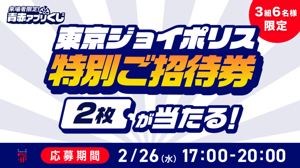 2月26日(水)FC東京vs 名古屋グランパスにて、FC公式アプリを活用した来場者限定の「青赤アプリくじ」を実施します。