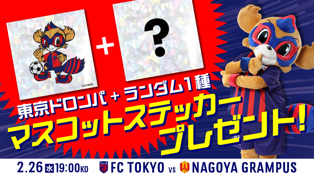 2月26日(水) 2025 明治安田J1リーグ 第3節 vs 名古屋グランパス(19:00キックオフ/味の素スタジアム)にて、マスコットステッカープレゼント企画を実施いたします。