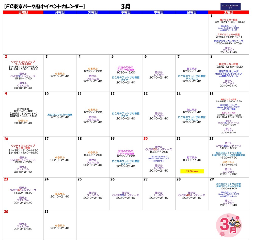 【FC東京パーク府中】3月普及部コーチ指導イベント参加者募集のお知らせ