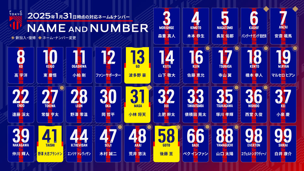 2025シーズンよりスタジアムグッズ売店にて、2025シーズンユニフォームへの、ネーム&ナンバー圧着加工サービスを開始いたします。