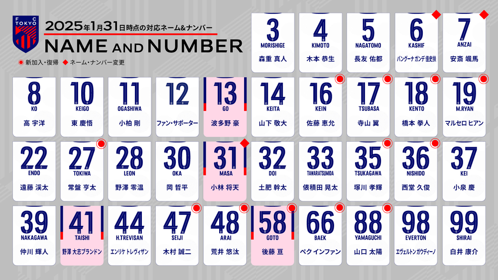 ・試合当日のメイン1ゲート場外グッズ売店以外でご購入されたネーム&ナンバーなしのユニフォームへの圧着加工は、FC東京オフィシャルショップにてご対応させていただきます。
