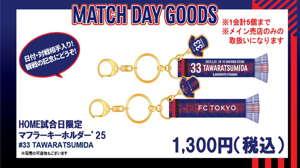 ホームゲーム時に、日付、対戦相手の入ったマッチデーグッズを販売いたします。選手も毎回異なります!試合観戦の記念にぴったりな商品となっております。