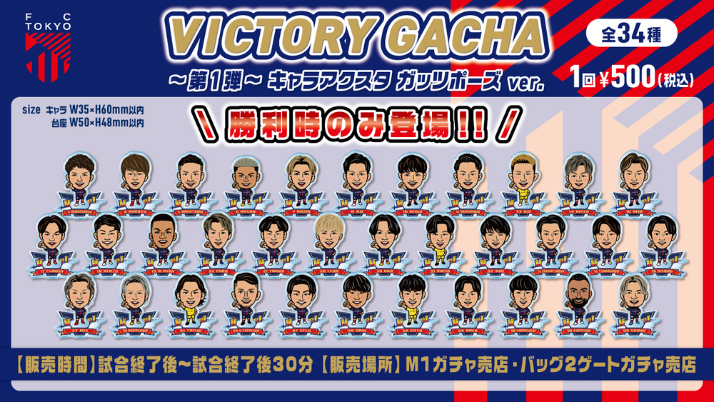 勝利時限定で、VICTORY GACHAをM1ガチャガチャ・シークレット売店・バック2ゲートガチャガチャで、販売します。