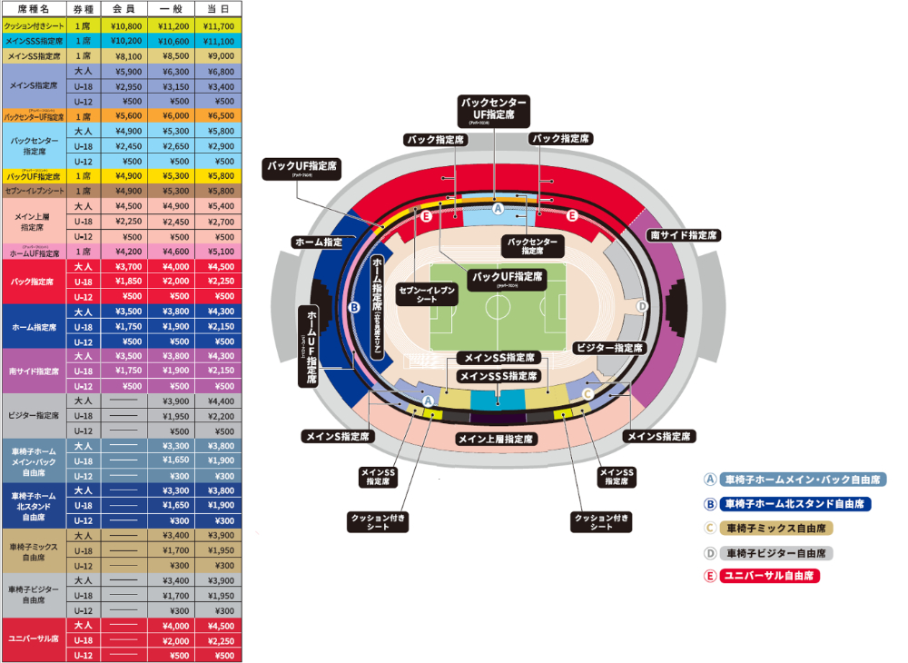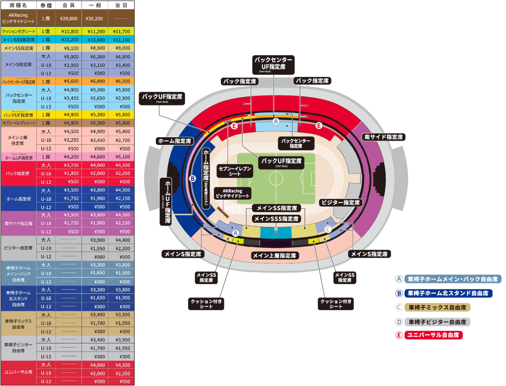 バック指定席・ホーム指定席・南サイド指定席(予定)