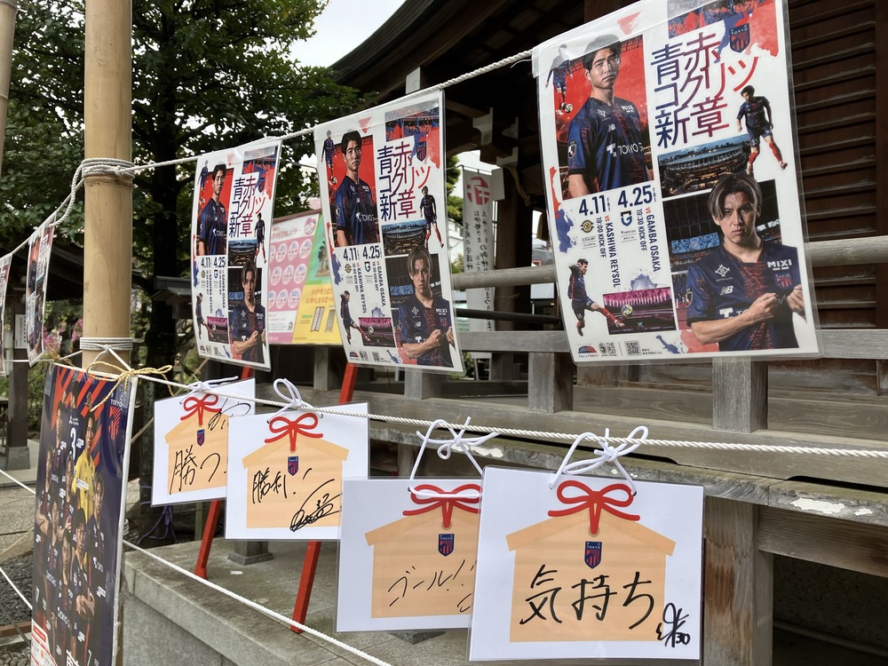 今回、鳩森八幡神社では昨年頒布(販売)したFC東京とのコラボお守りも再頒布されるとともに、4月11日(金)柏戦の試合前は東京ドロンパも神社に出没し、絵馬を書いて勝利祈願しますのでぜひ会いにきてください。