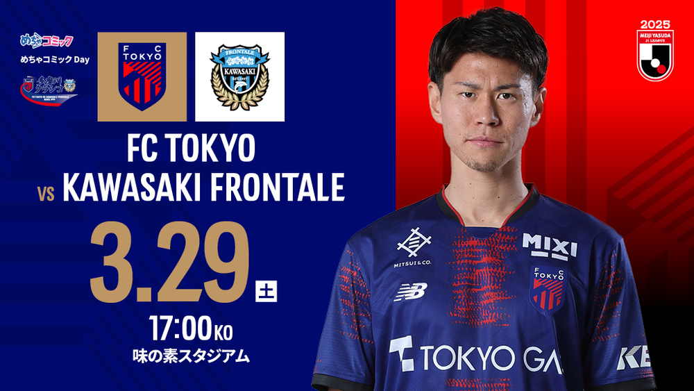 3月29日(土) 2025明治安田J1リーグ 第7節 vs川崎フロンターレ(17:00キックオフ/味の素スタジアム)は、『第45回多摩川クラシコ』です。
