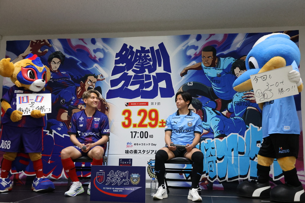 3月26日(水)に実施した「第45回多摩川クラシコ事前合同会見」で使用したバナーをフォトスポットとして設置いたします。第45回多摩川クラシコ限定の掲出となりますので、ぜひこの機会に撮影してください。