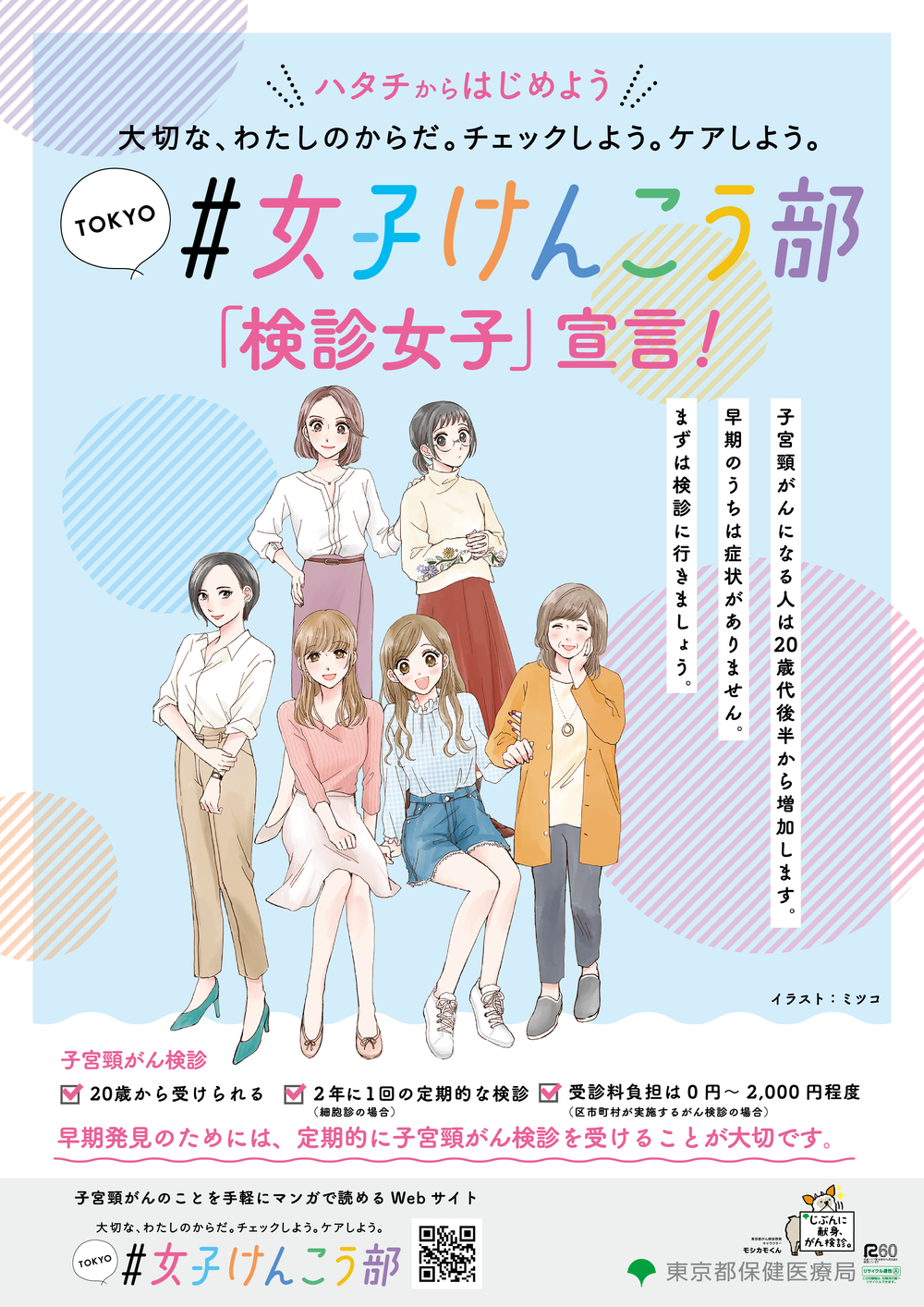 女性が生涯を通じて健康で明るく、充実した日々を自立して過ごすことを総合的に支援するため、厚生労働省は毎年3月1日~8日を「女性の健康週間」と定め、女性の健康づくりを国民運動として展開することとしています。東京都ではこの期間、女性特有の「子宮頸がん」「乳がん」や、女性に多い「大腸がん」などの予防啓発に取り組んでいます。この機会に、自分のからだと向き合ってみましょう。