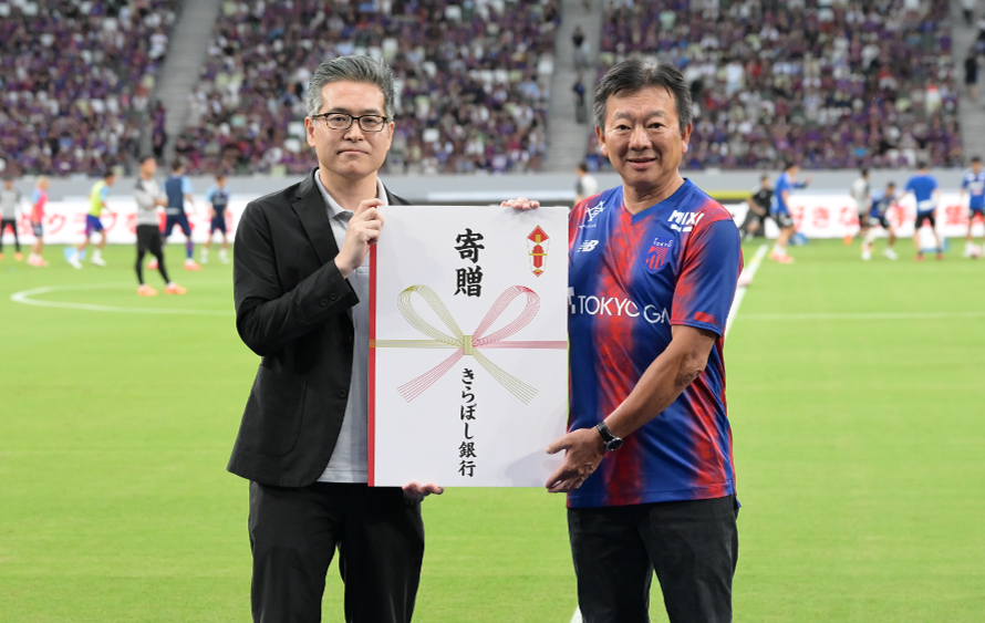 FC東京のクラブビジョンのひとつである、サッカー通じた青少年の健全な心身の発達、スポーツ文化の振興活動に賛同していただき、きらぼし銀行より子どもたちのための育成資金がクラブへ贈呈されます。