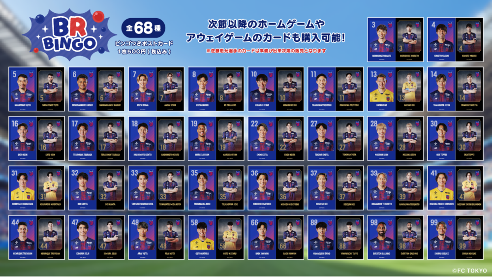 サッカーのルールに詳しくない方でも、ご家族や友人とスタジアムへ出かけ、BR BINGOとともに試合観戦を楽しんでいただきたいという願いをもって販売開始します。ぜひこの機会にお買い求めください。